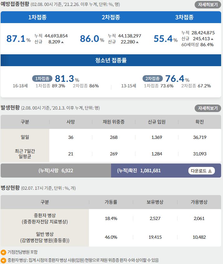 | 코로나19(2022.2.9) 질병관리청 유행상황분석 (주요방역지표), 재택치료 지침변경, 이동량분석과 병상 상황 (0) | 2022.02.09 |