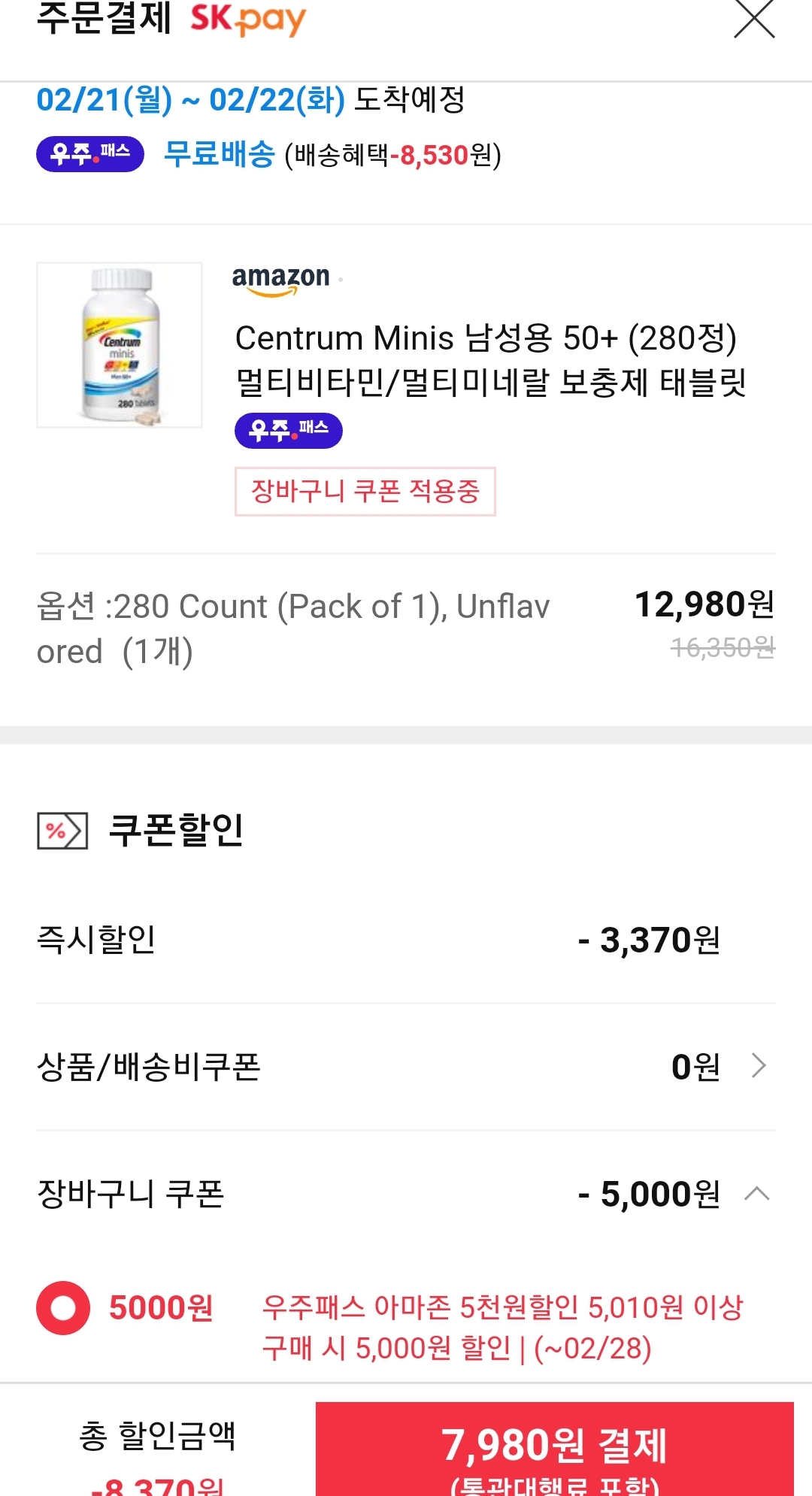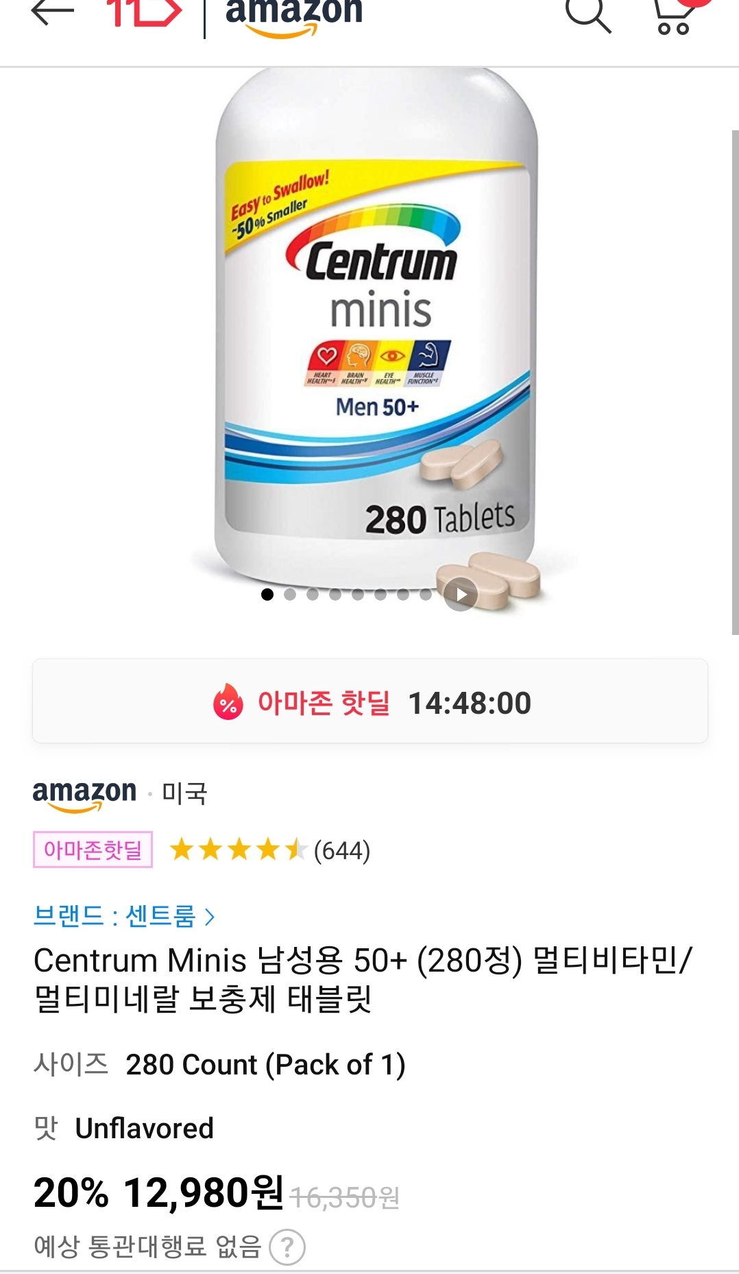 (11번가-아마존) 센트룸 남성용 50+ minis 280정(140일분) (1.3만원/일반, 8천원/우주패스) 본문