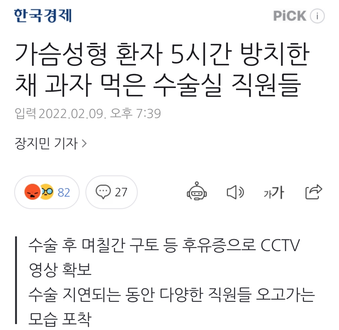 가슴성형 환자 5시간 방치한 채 과자 먹은 수술실 직원들