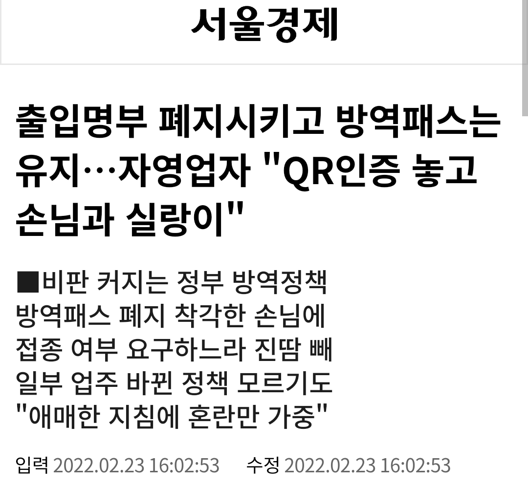 'K방역' 사라졌는데 여전히 'QR 인증' 왜?…방역패스 확인용 전환할 듯 (edaily.co.kr)