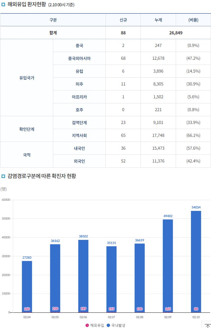 코로나19집계(2022.2.10. 0시기준): 54122명 본문
