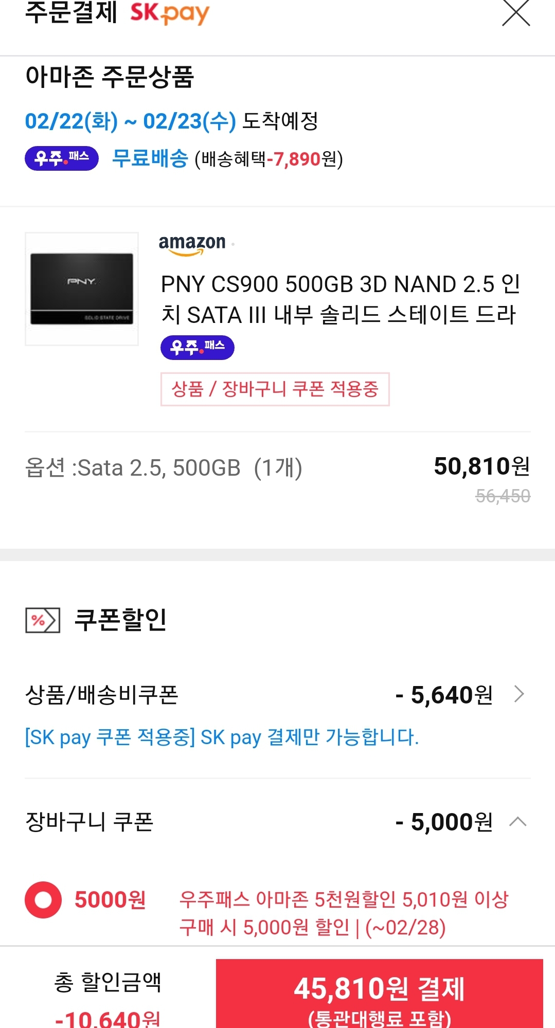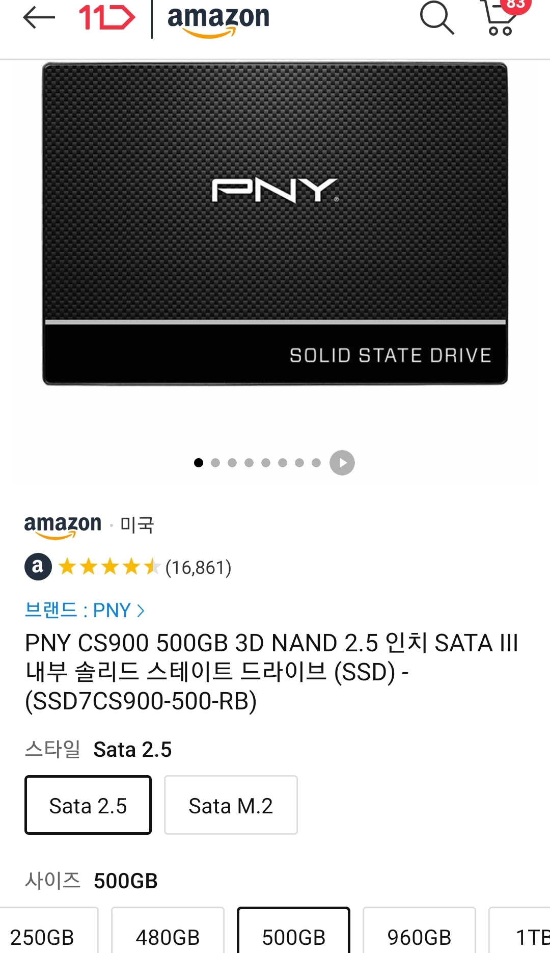 (11번가-아마존) PNY 500GB SATA SSD (~4.6만/우주패스, ~4.3만/우주패스·11번가 신한) 본문