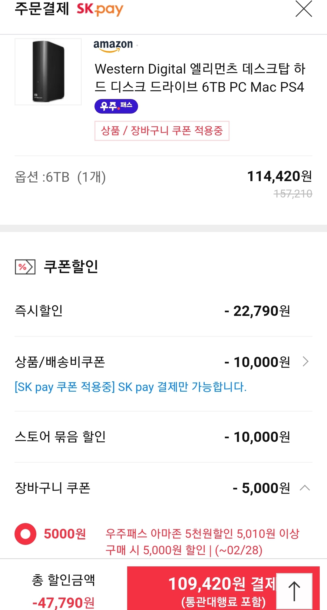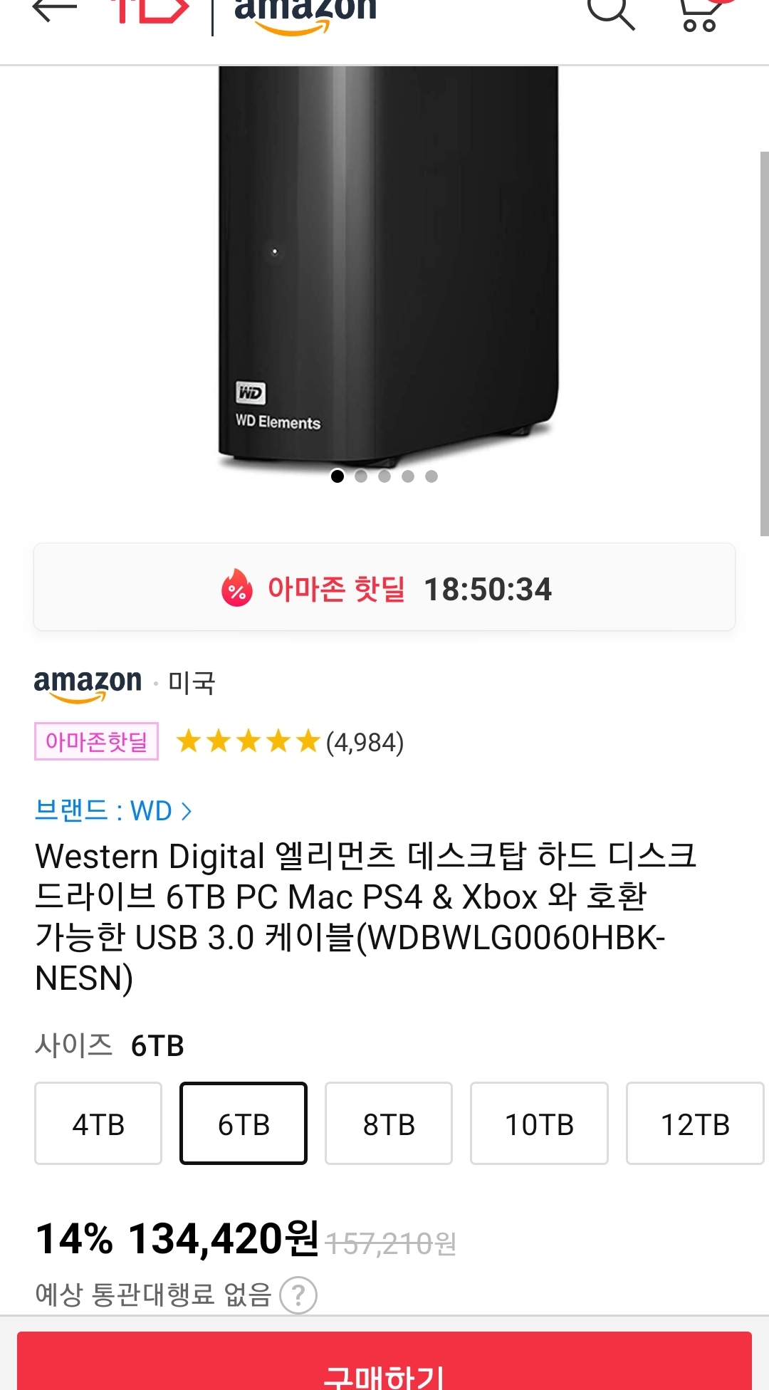 (11번가-아마존) WD 엘리먼츠 6TB 외장하드 (~11만원/우주패스, ~11.5만원/일반) 본문