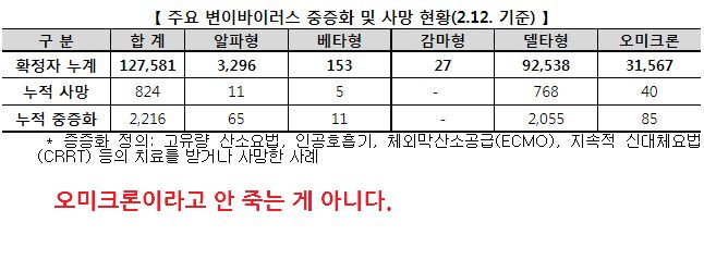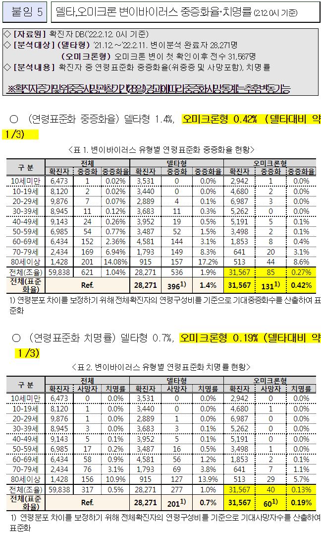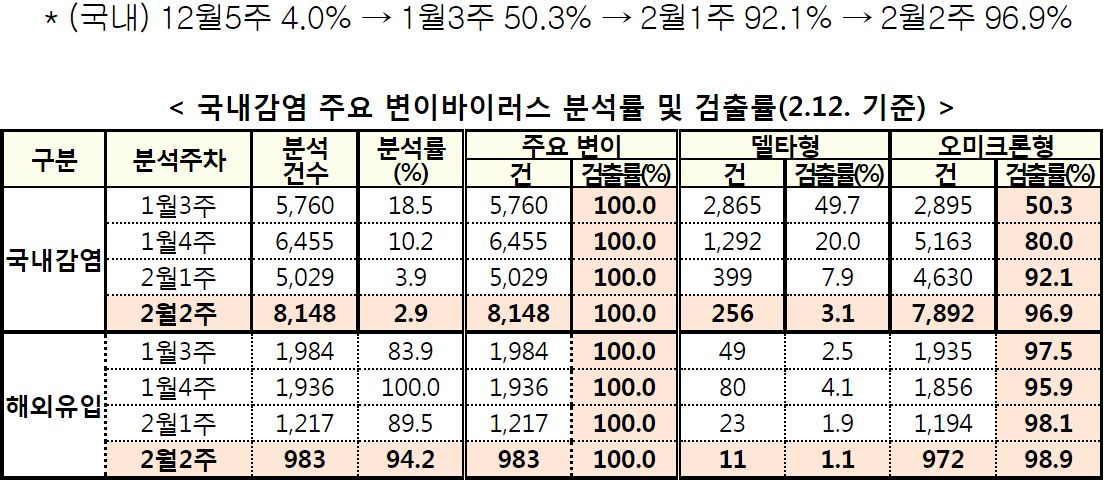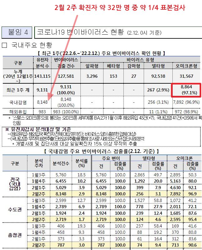 표본검사자의 95%를 넘는 수가 오미크론변이 확진자로 분류.