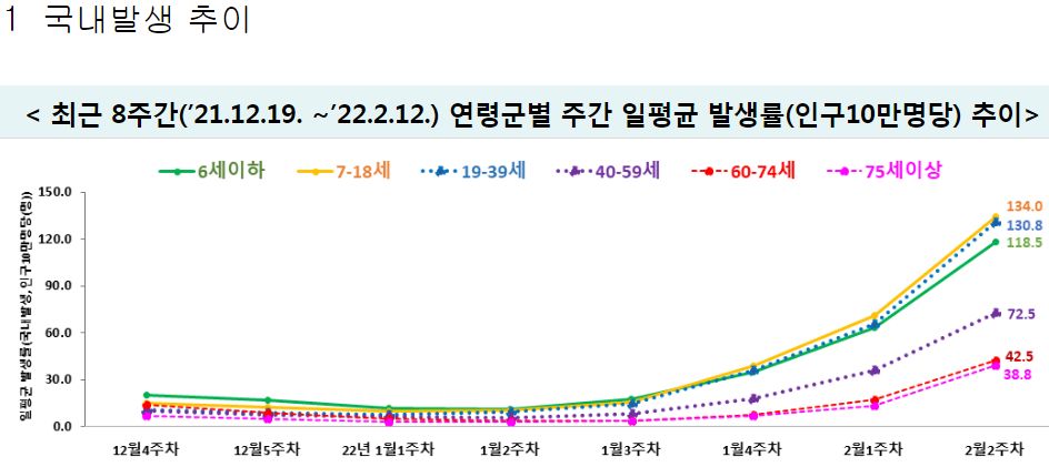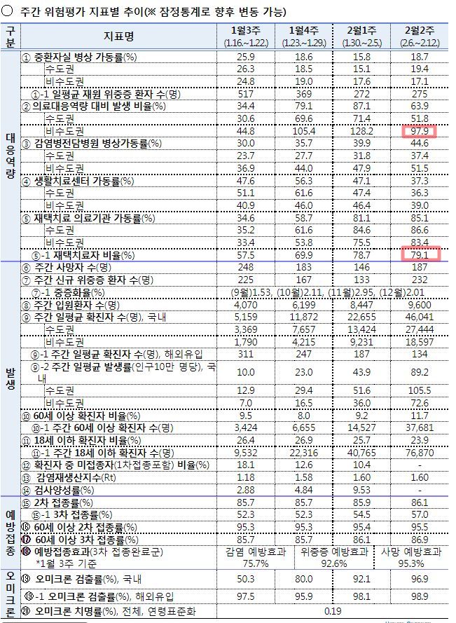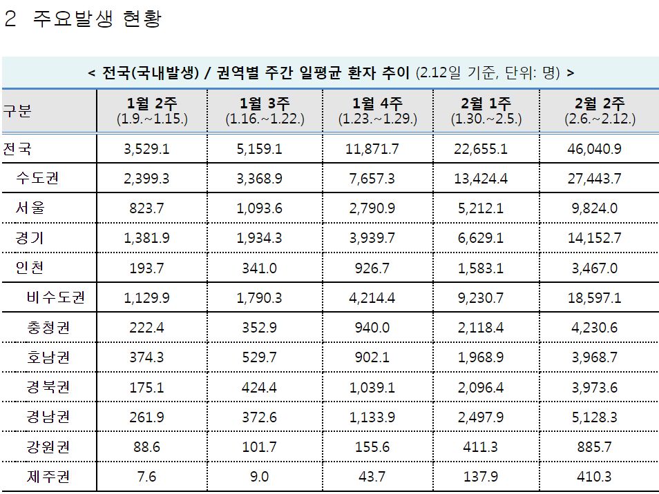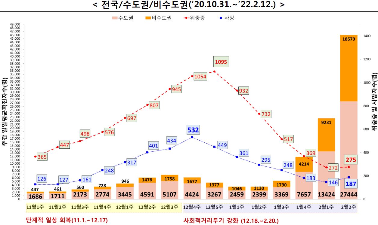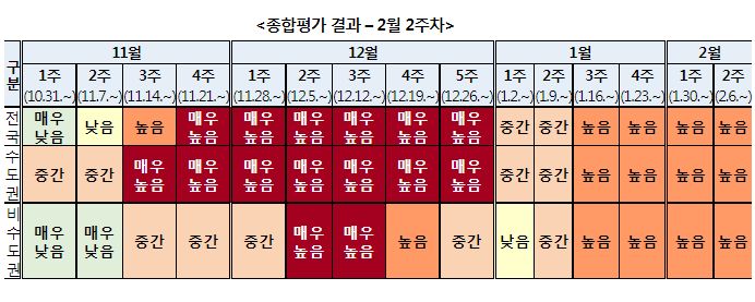 코로나19(2022.2.14) 주간 유행상황(위험도평가): 높음 => 높음 ★ 본문
