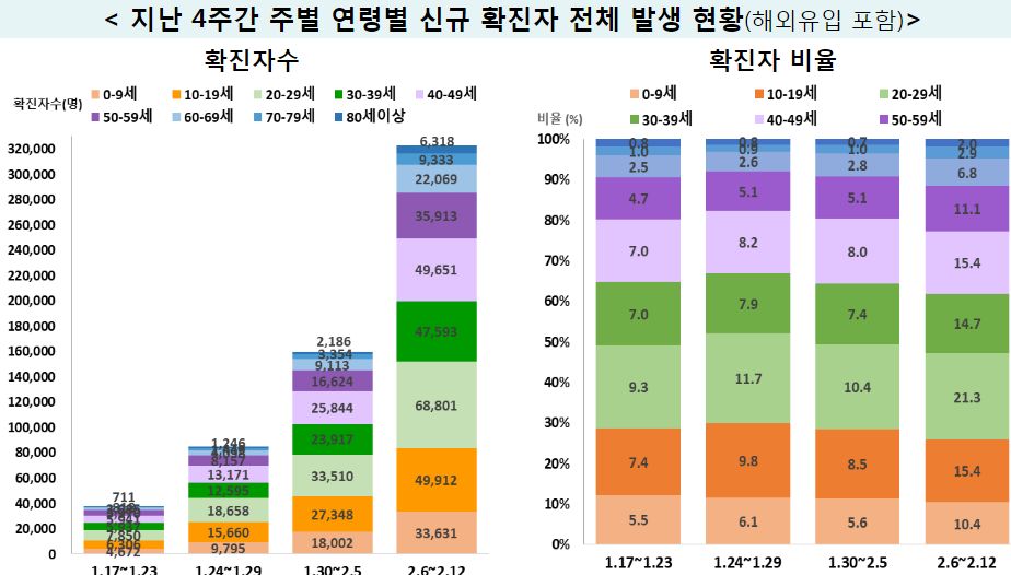 확진자 중 60세 이상은 1할 정도, 미성년자는 2할 남짓.