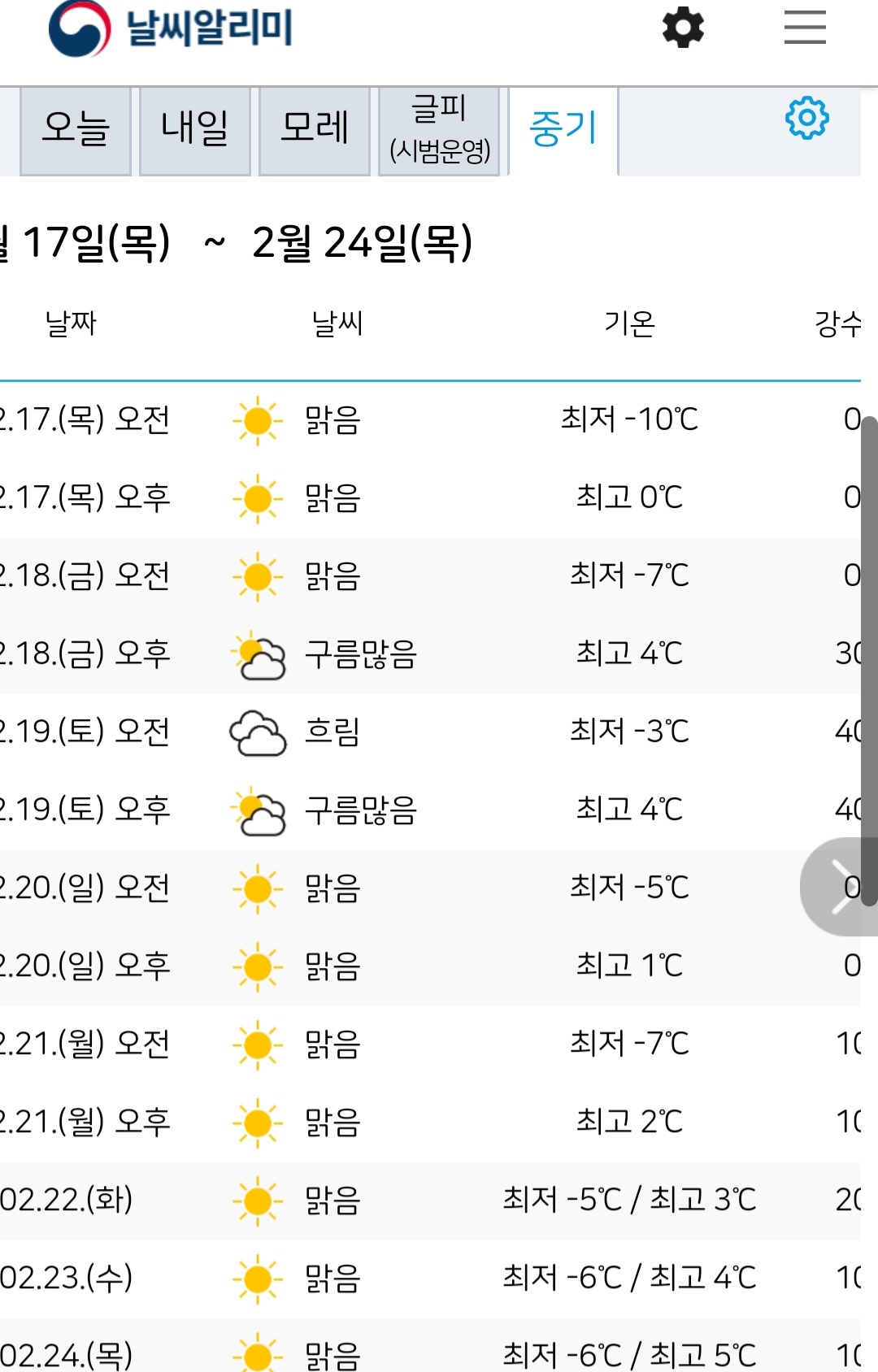 | 서울대전날씨, 2월 중순까지 중기예보 (0) | 2022.02.09 |