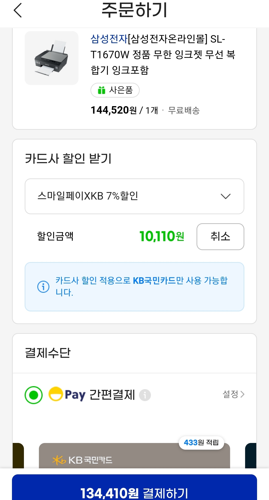 카드할인이 가장 빨리 끝나가는 것 같네요. 스마일카드할인은 넉넉해보이지만 일반 신용카드할인은 삼성카드와 KB카드만 남았습니다.