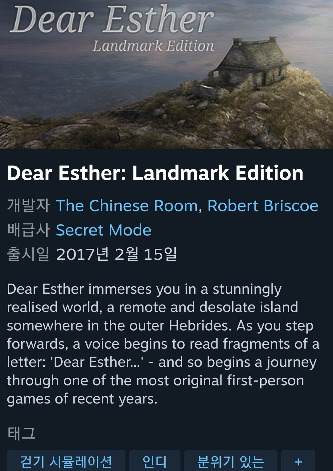 https://store.steampowered.com/app/520720/Dear_Esther_Landmark_Edition/
