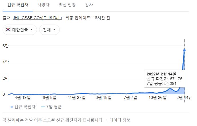 코로나19집계(2022.2.15. 0시기준): 57177명 본문
