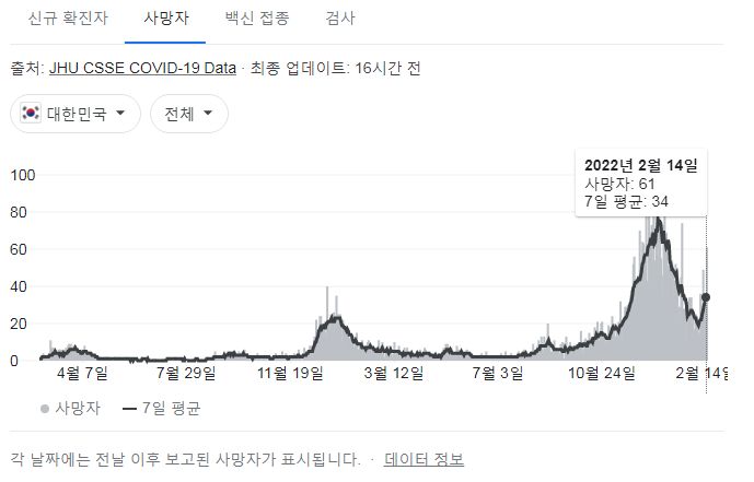 | 코로나19집계(2022.2.14. 0시기준): 54619명 ★ /:/ 확진자검사집계에 대한 짧은 잡담 (0) | 2022.02.14 |