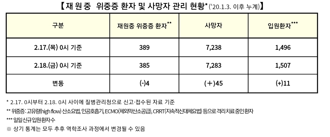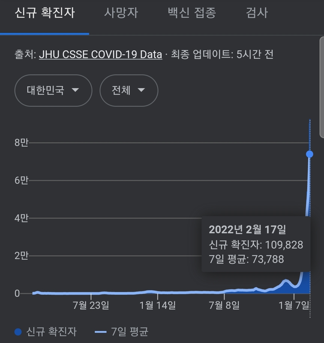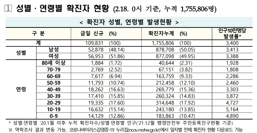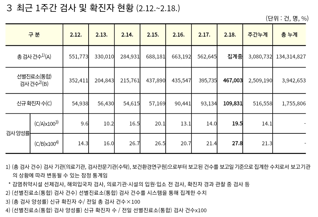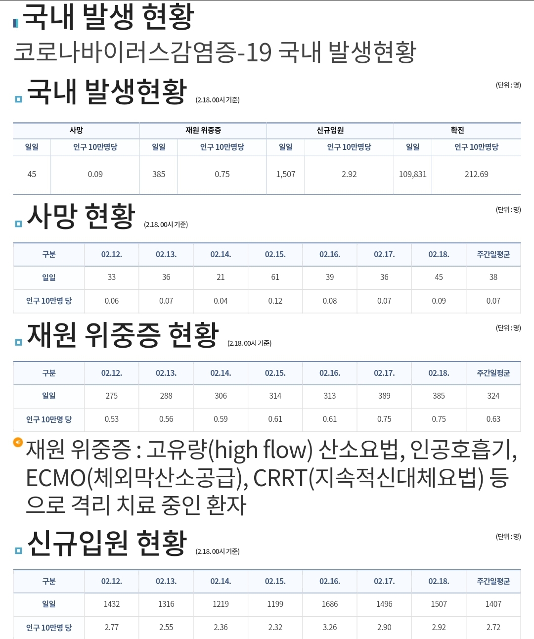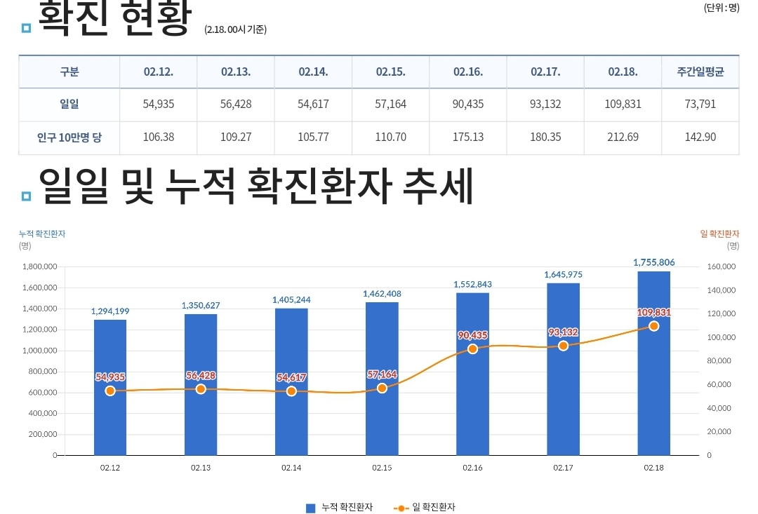 코로나19집계(2022.2.18. 0시기준): 109831명 본문