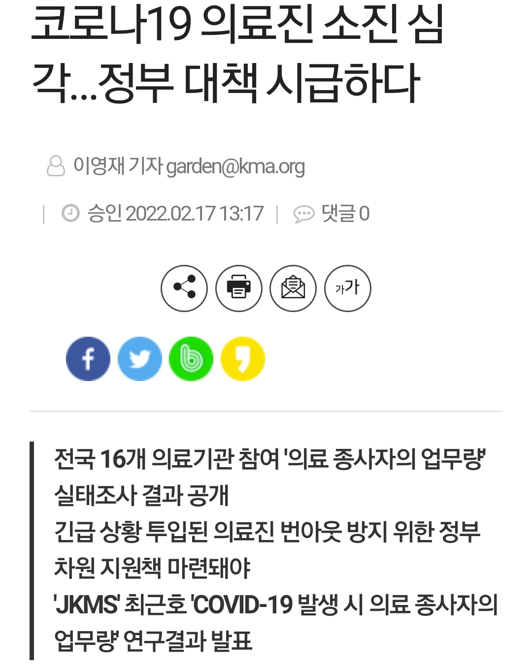 코로나19 의료진 소진 심각…정부 대책 시급하다 - 의협신문