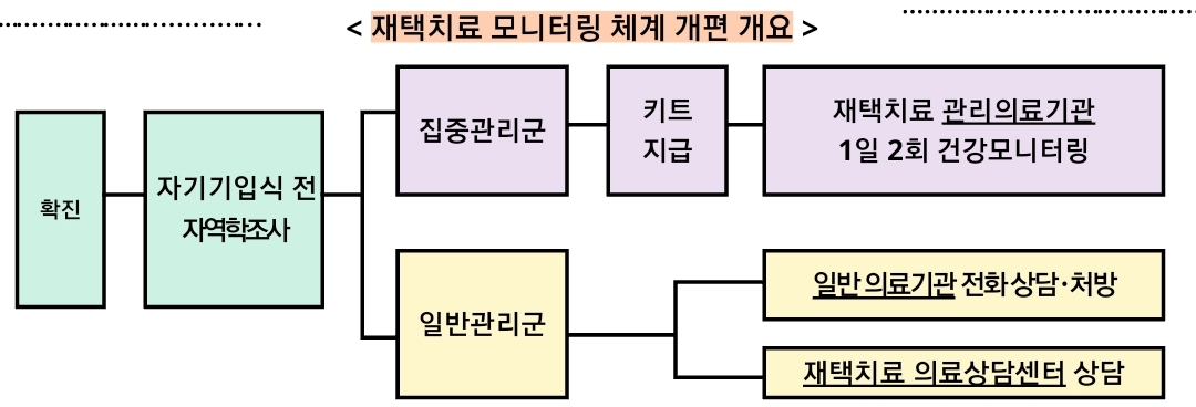 재택치료대상 확진자를 집중군과 일반군으로 나눈 이유는, 정부가 둘 다 케어할 수 없기 때문에 상대적으로 죽을 확률이 낮다고 간주한 일반군은 의료진 모니터링 대상에서 빼, 자가치료(자택에서 셀프 요양)하다 몸안좋다싶으면 연락해 집중관리군에 편입신청하라한 것일 겁니다. 오미크론변이주 바이러스가 약하다고는 하지만 실무적인 이유도 있었던 것 같네요. 지난주도 그렇고 오늘자 보도자료에도, "재택치료역량은 집중관리군 20만명+를 감당할 수 있다"고 적혀있지만, 재택치료자 전체 집계가 35만 명을 넘어간 게 지난 번 발표였죠.