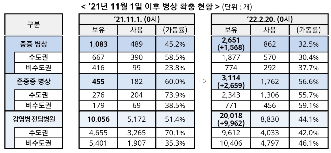확진자가 계속 증가하면 시설수용 환자도 늘기는 할 겁니다. 며칠사이 신규입원환자수가 늘고 있으니까요. 그래서 예비를 만들려고 짜낸 여유일지도 모르고. 하지만 그게 "입원대기 중 사망"을 "재택치료 중 사망"으로 이름만 바꾼 결과로 이어져서는 안 되쟎아요. 이 상황에서 오늘도 "입원대기없다, 병상가동률수치 낮다"고 적어놓은 홍보자료가 눈에 걸린다는, 개선할 필요가 있다는 말입니다.