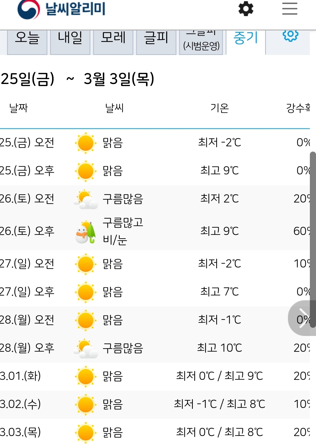 서울이나 대전이나 영하, -7~ -10 도까지 내려가는 주중이 지나면, 주말부터는 슬슬 삼월날씨가 되려나봅니다. 땅이 녹으려면 좀 더 가야 하겠지만..