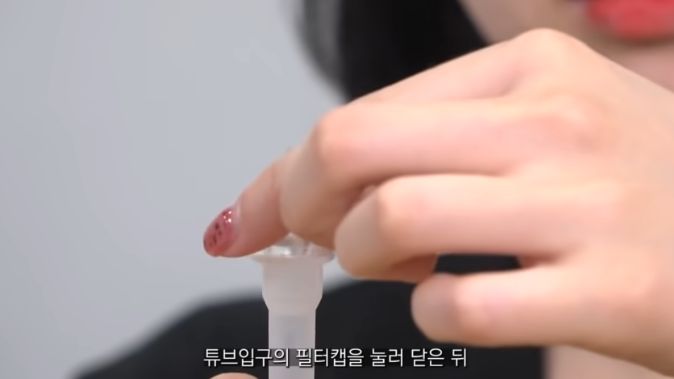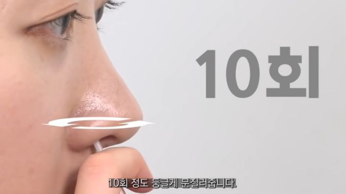 위 영상처럼 금이 1개 그어져 있으면 그 1개 그어진 금까지 콧속으로 밀어넣습니다.