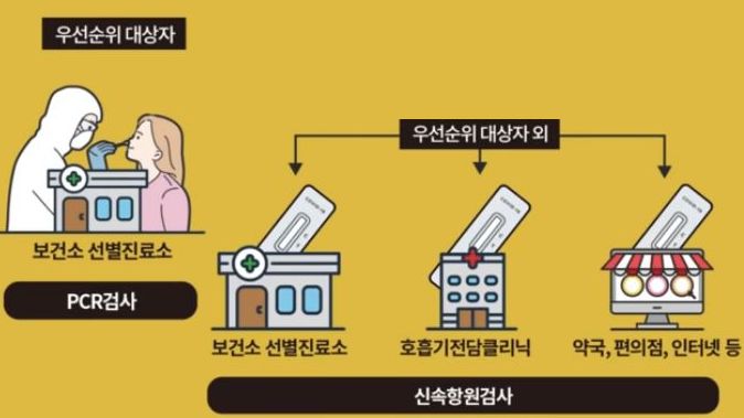 오미크론 확산에 효율적으로 대응하기 위해 지난 1월 26일부터 오미크론 우세지역(광주, 전남, 평택, 안성)을 시작으로 새로운 진단검사 체계가 도입됐습니다. *1.29. 전국 선별진료소 적용, 2.3. 전