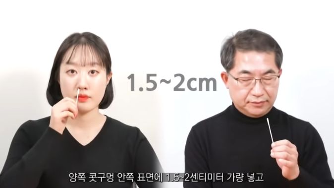 자가검사키트 설명을 보면, 저 면봉의 막대기에 금이 1~2개 그어져 있어서 사용법을 설명합니다.