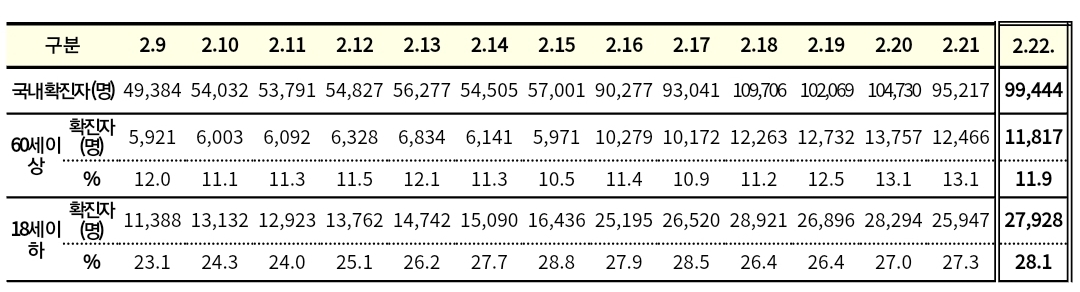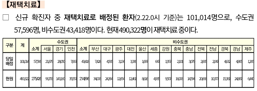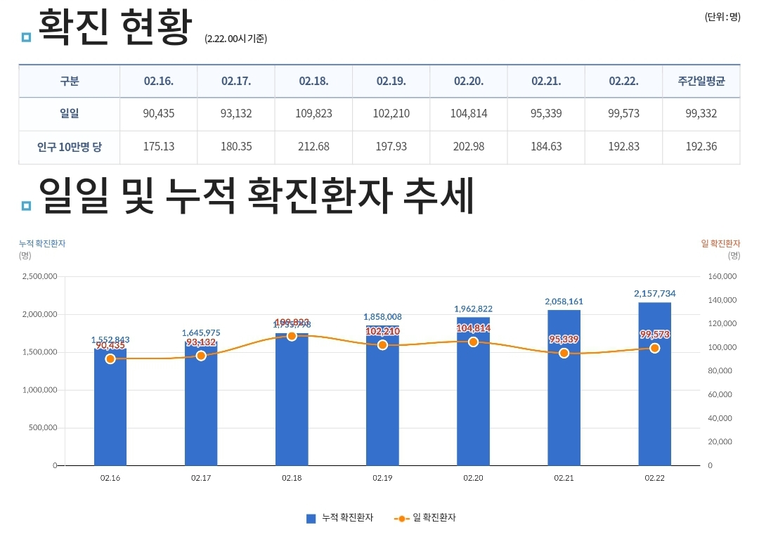 코로나19집계(2022.2.22. 0시기준): 99573명/:/ 재택치료 49만 명+ 본문