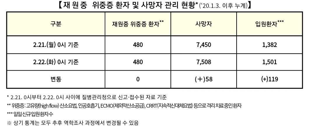 코로나19집계(2022.2.22. 0시기준): 99573명/:/ 재택치료 49만 명+ 본문