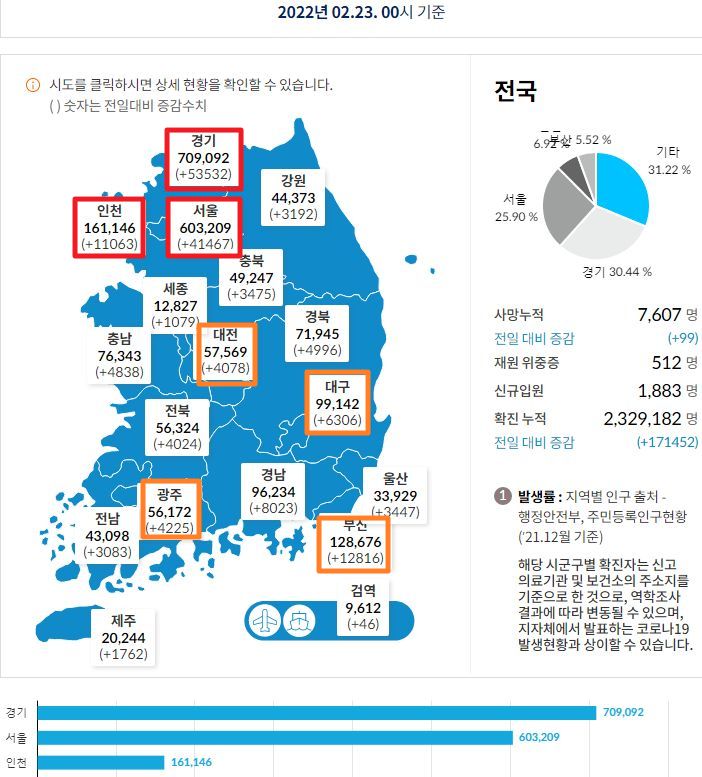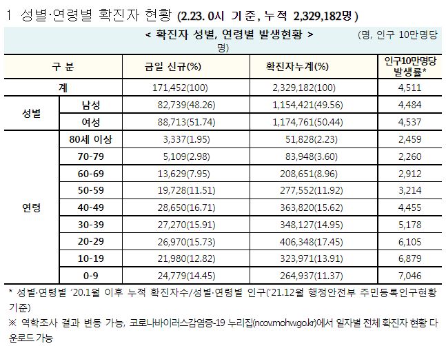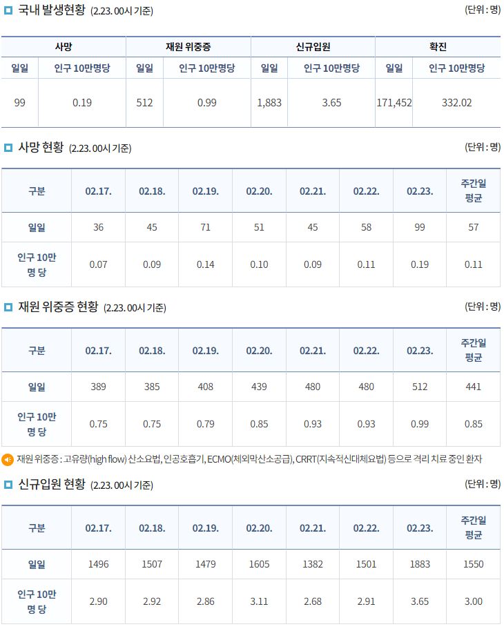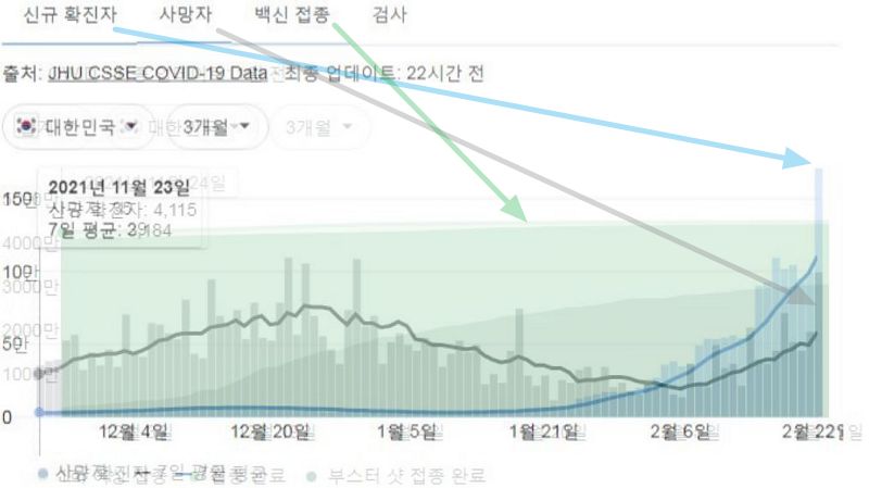 코로나19집계(2022.2.23. 0시기준): 171452명 ★/:/ 최근 90일 확진자, 사망자 추이 본문