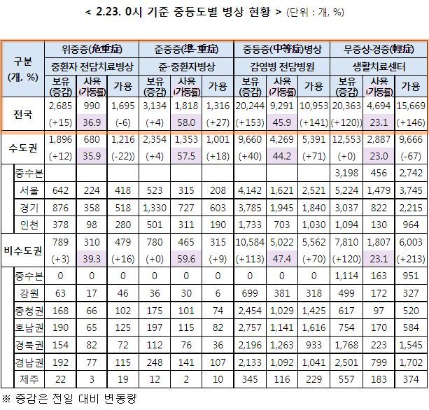 "재택치료자 집중관리군 대상 건강관리(1일 2회)를 위한 관리의료기관은 현재 744개소(2.23.0시)로 21만명 이상의 집중관리군을 관리할 수 있는 역량" => 현재 전체 재택치료자는 50만명대 중반으로 추정되며(어제 0시부로 재택치료 49만 명이었는데, 오늘 0시부로 17만 명 신규확진자 발생. 오늘 0시부로 재택치료자 현황 50만명대 초반) 대부분이 일반관리군. 일반관리군/재택관리군으로 나누지 않으면 재택치료역량이 감당못하는 상황. 무증상/경증이라도 취약한 환자/재택치료할 환경이 안 된다고 판단되면 생활치료센터 입소.