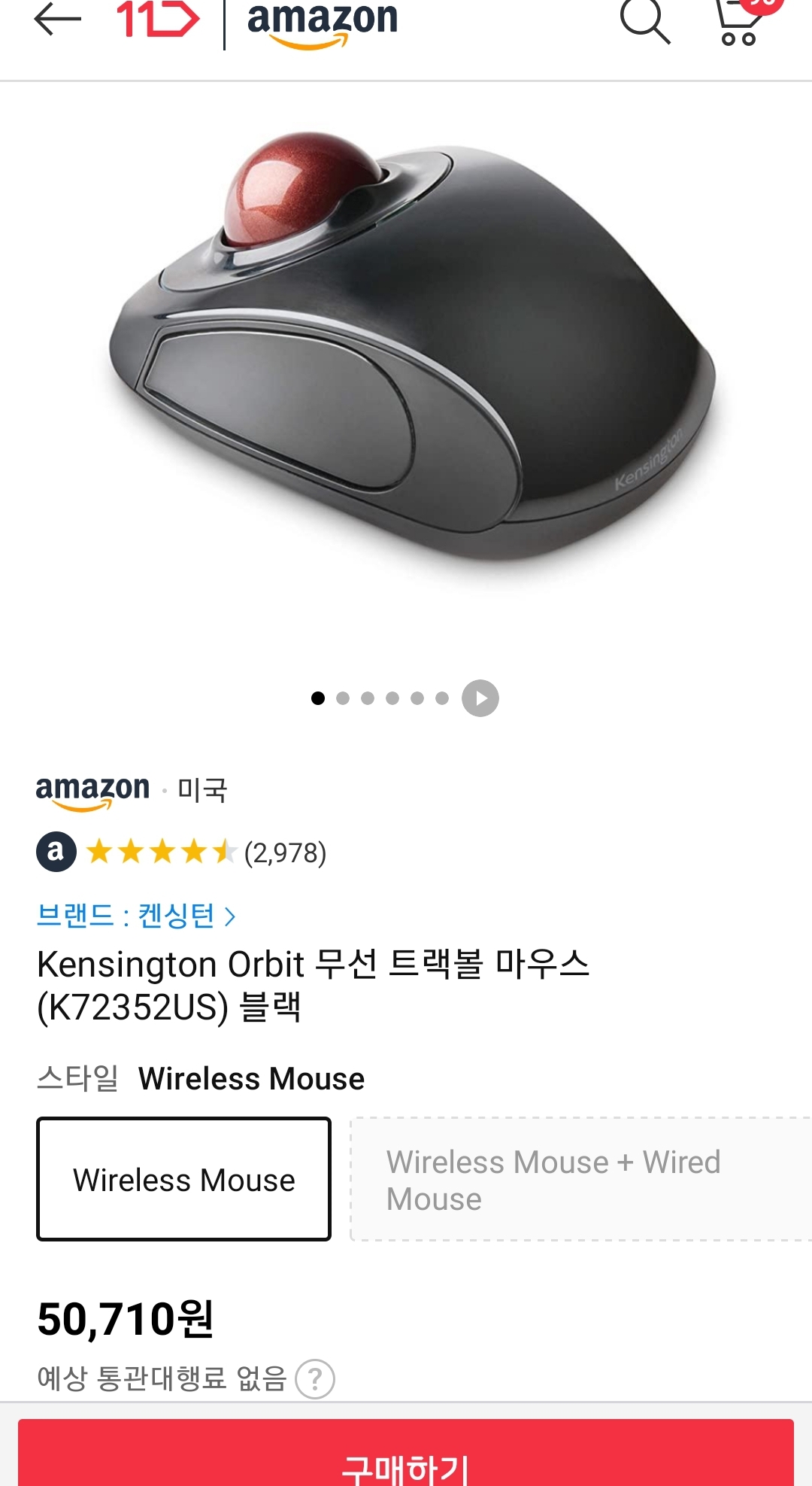 (11번가-아마존) 켄싱턴 오비트 무선 터치스크롤링 트랙볼 마우스 (~4.6만/우주패스, ~5.1만/일반) 본문