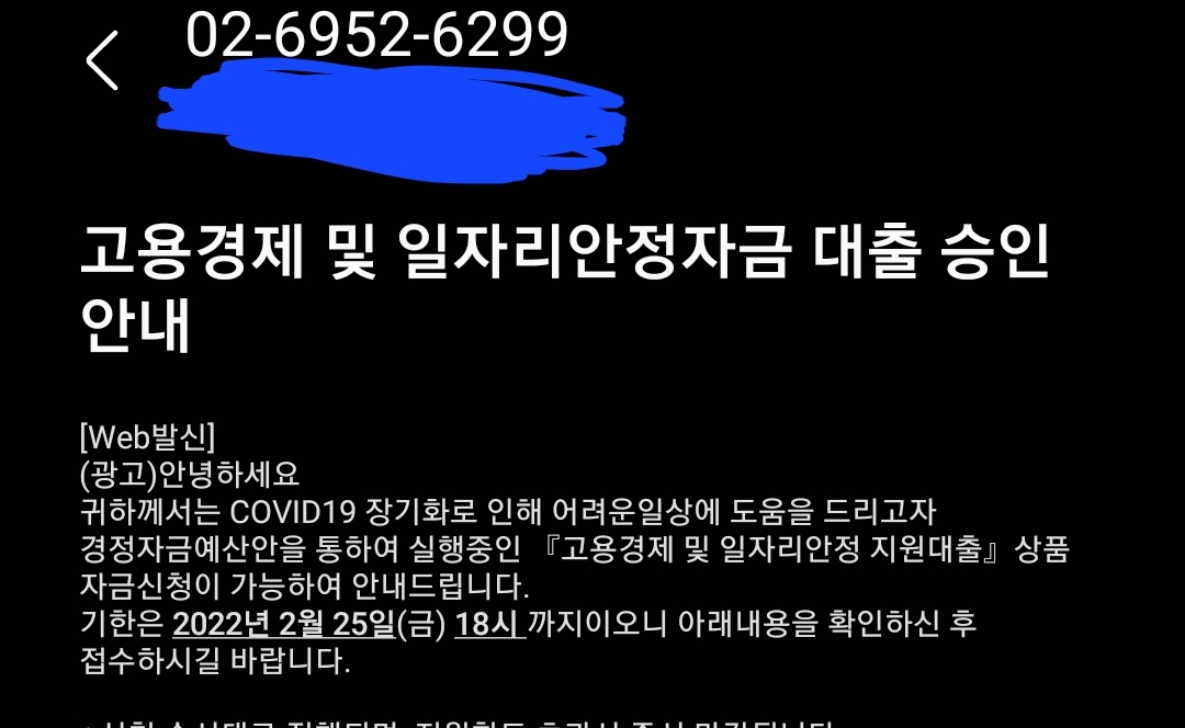 귀하께서는 COVID19 장기화로 인해 어려운일상에 도움을 드리고자 경정자금예산안을 통하여 실행중인 『고용경제 및 일자리안정 지원대출』상품 자금신청이 가능하여 안내드립니다.