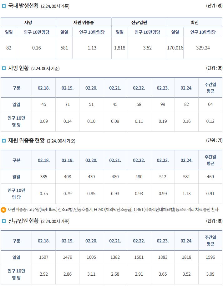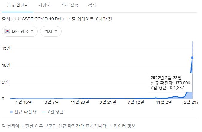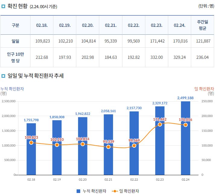 코로나19(2022.2.24. 0시기준): 170016명 본문