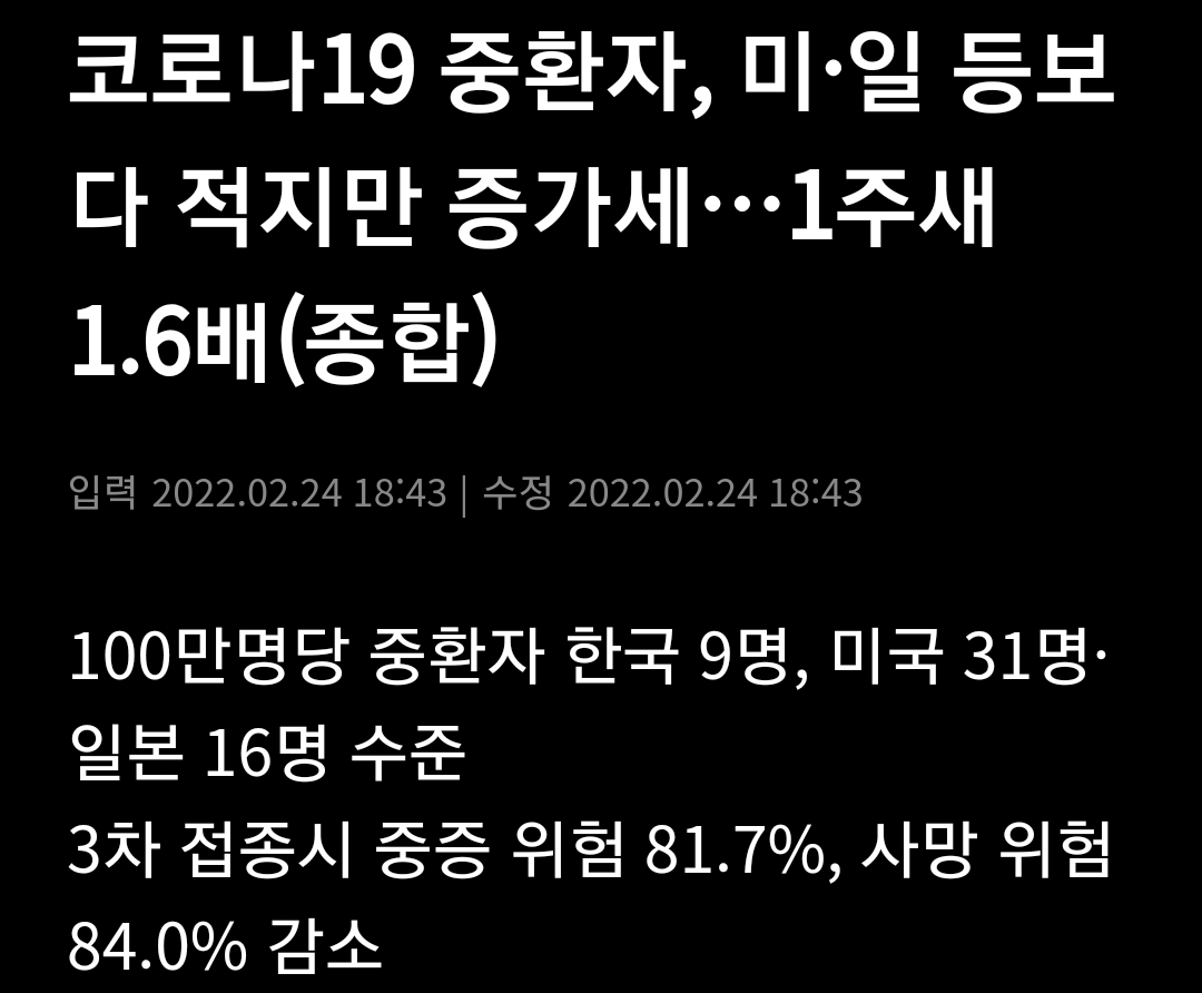 | 코로나19(2022.2.24) 예방접종효과분석 - 질병관리청 (작성중)/:/유행추이 해석기사들. 한국과 미국의 유행차이 (0) | 2022.02.24 |