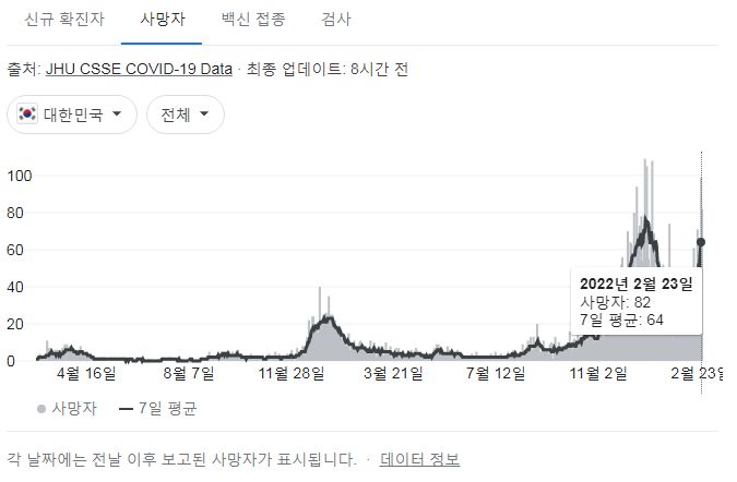 | 코로나19집계(2022.2.26. 0시기준): 166209명/:/ 일일사망자 112명, 주간확진자 109만 명 (0) | 2022.02.26 |