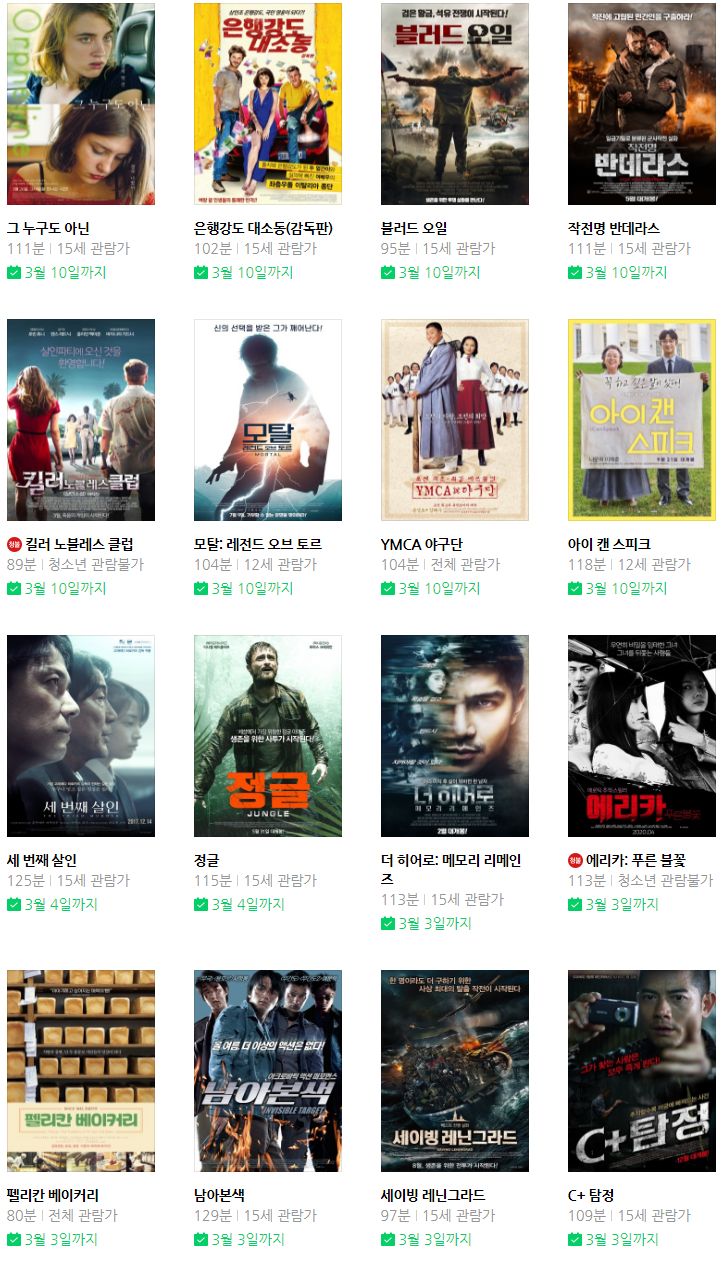 ~3.10.. 그 누구도 아닌, 은행강도 대소동(감독판), 블러드 오일, 작전명 반데라스, 킬러 노블레스 클럽, 모탈:레전드 오브 토르, YMCA 야구단, 아이 캔 스피크