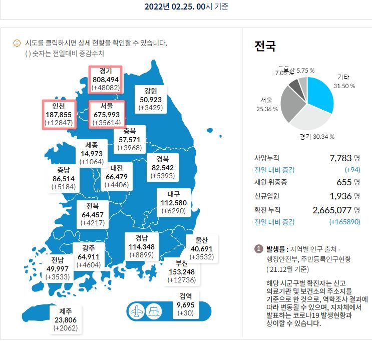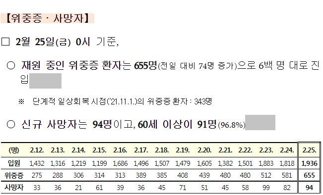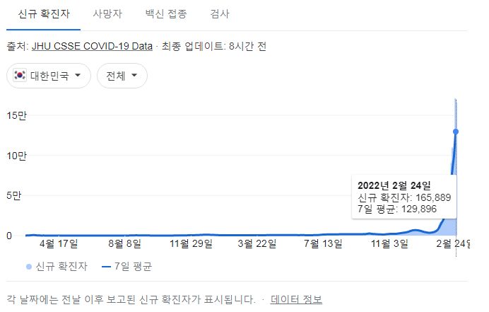 코로나19집계(2022.2.25. 0시기준): 165890명/:/ 재택치료자 65만 명+/:/ 방역체계변경 본문