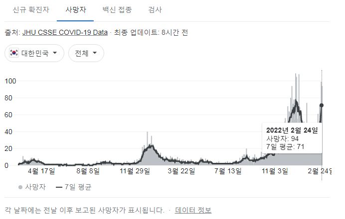 | 코로나19(2022.2.24) 예방접종효과분석 - 질병관리청 (작성중)/:/유행추이 해석기사들. 한국과 미국의 유행차이 (0) | 2022.02.24 |