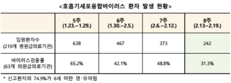인플루엔자 및 호흡기세포융합바이러스 환자 추이