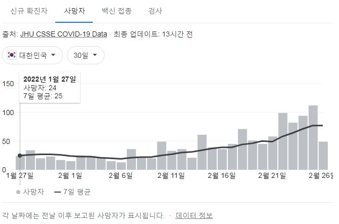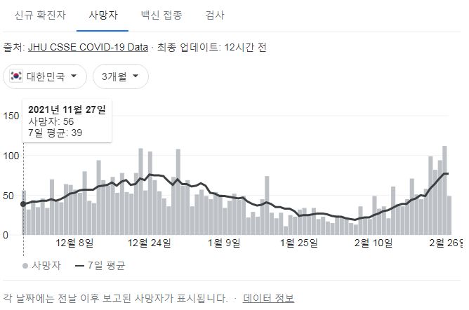 구글 그래프로 본 최근 3개월, 1개월 유행추이.