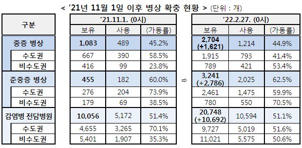 병상확보/가동률 및 재택치료 상황