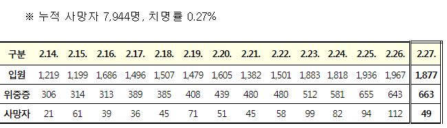 코로나19, 주간 주요 방역지표 동향 분석(2020.2.20.~2.26.) ★ 본문