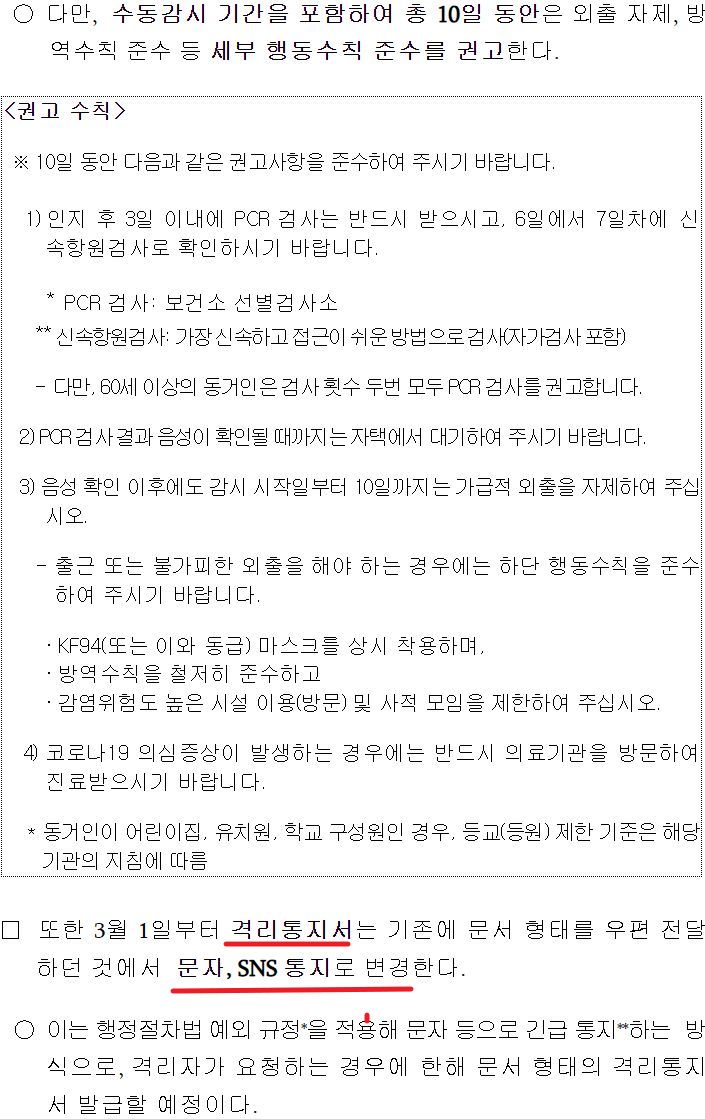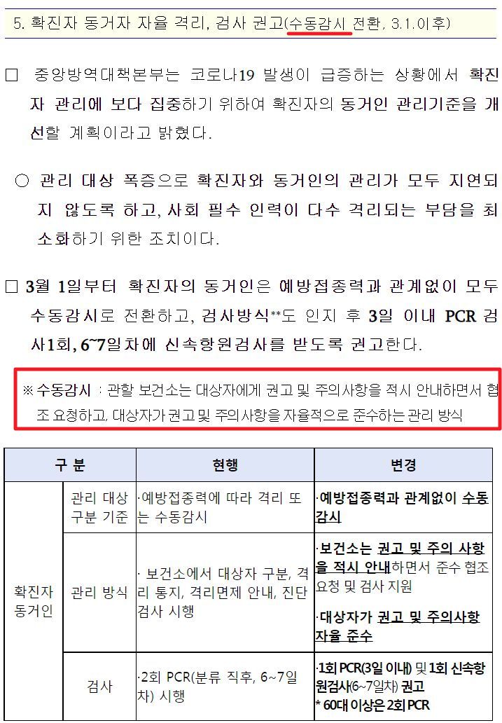 코로나19, 확진자 동거자 자율 격리, 검사 권고(수동감시) 본문