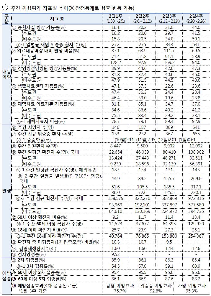 | 코로나19, 주간 주요 방역지표 동향 분석(2020.2.20.~2.26.) ★ (0) | 2022.02.27 |