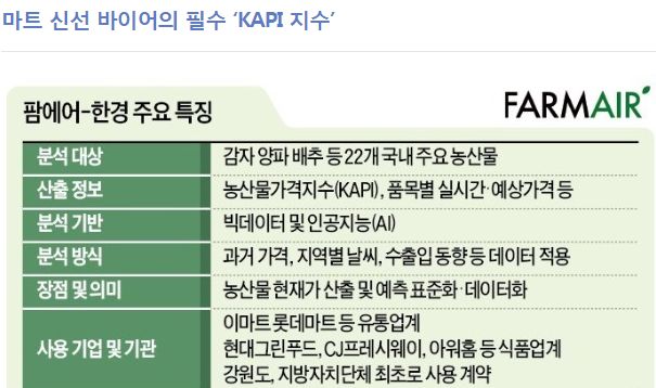 AI·빅데이터 무장한 '팜에어한경'…100조 농산물 시장 길잡이로 감자 등 22개 품목 가격 표준...