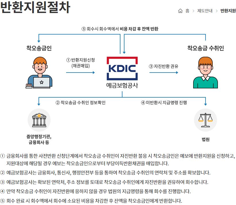 착오송금, 착오송금반환, 반환지원, 착오송금반환지원제도, 예금보험공사, 부당이득반환채권, 자진반환