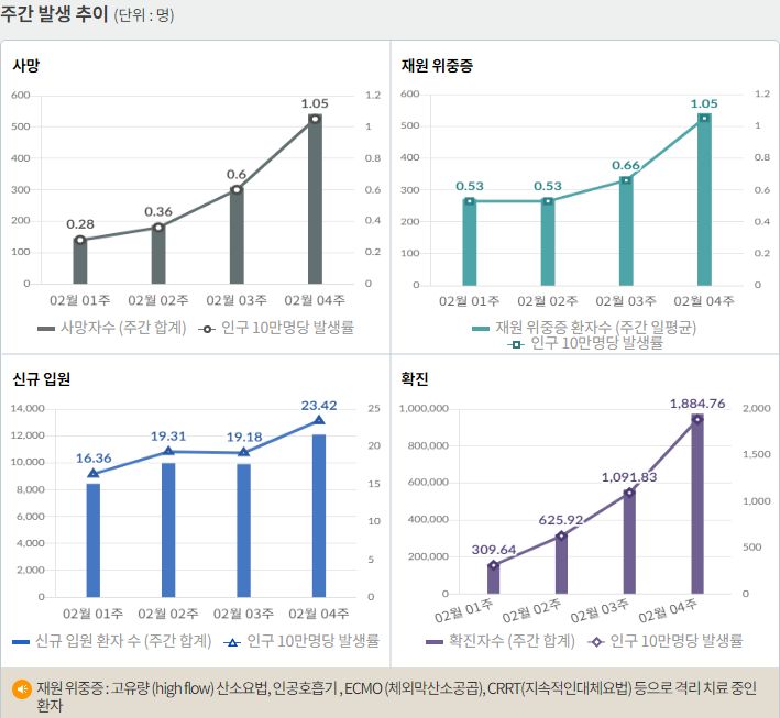 사망자와 위중증 환자, 재택치료환자