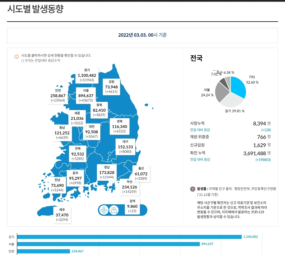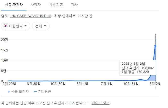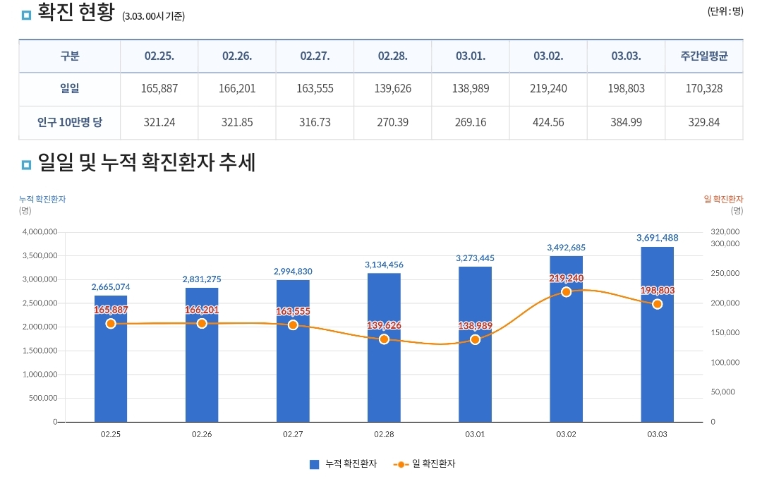 코로나19집계(2022.3.3. 0시기준): 198803명 본문