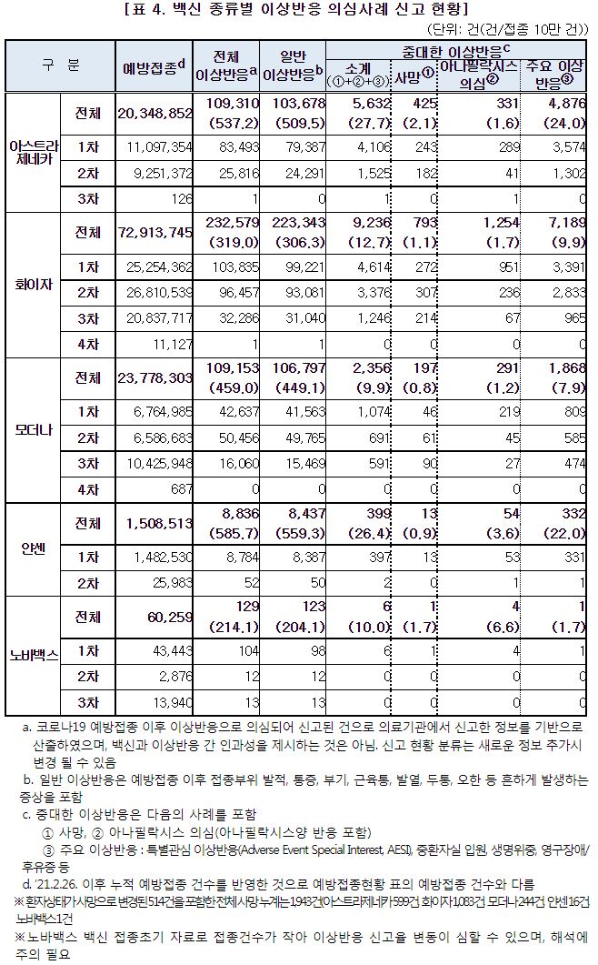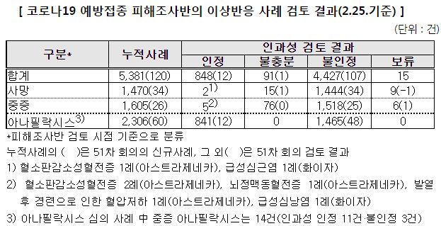코로나19(2022.3.3) 이상반응 신고현황 주간 분석 결과(52주차)/:/ 예방접종 피해조사반의 이상반응 사례검토 결과 분석 (~2.25.) 본문