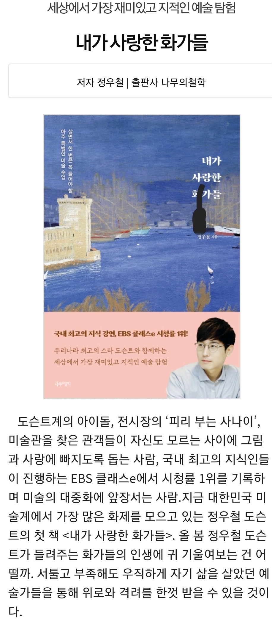 국내 최고의 지식 강연, EBS 클래스e 시청률 1위! 〈미술극장〉 진행자 정우철 도슨트와 함께하는 세상에서 가장 재미있고 지적인 예술 탐험도슨트계의 아이돌, 전시장의 ‘피리 부는 사나이’,