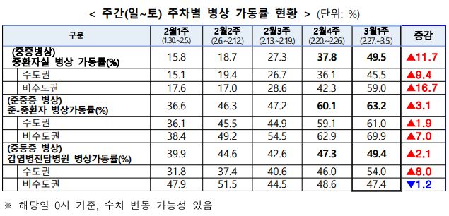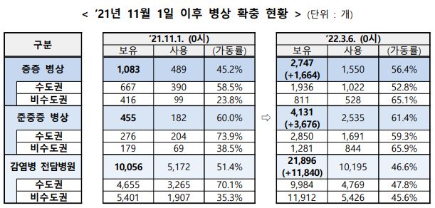 모든 단계 환자 증가, 병상가동률 증가, 병상 추가확보 중.