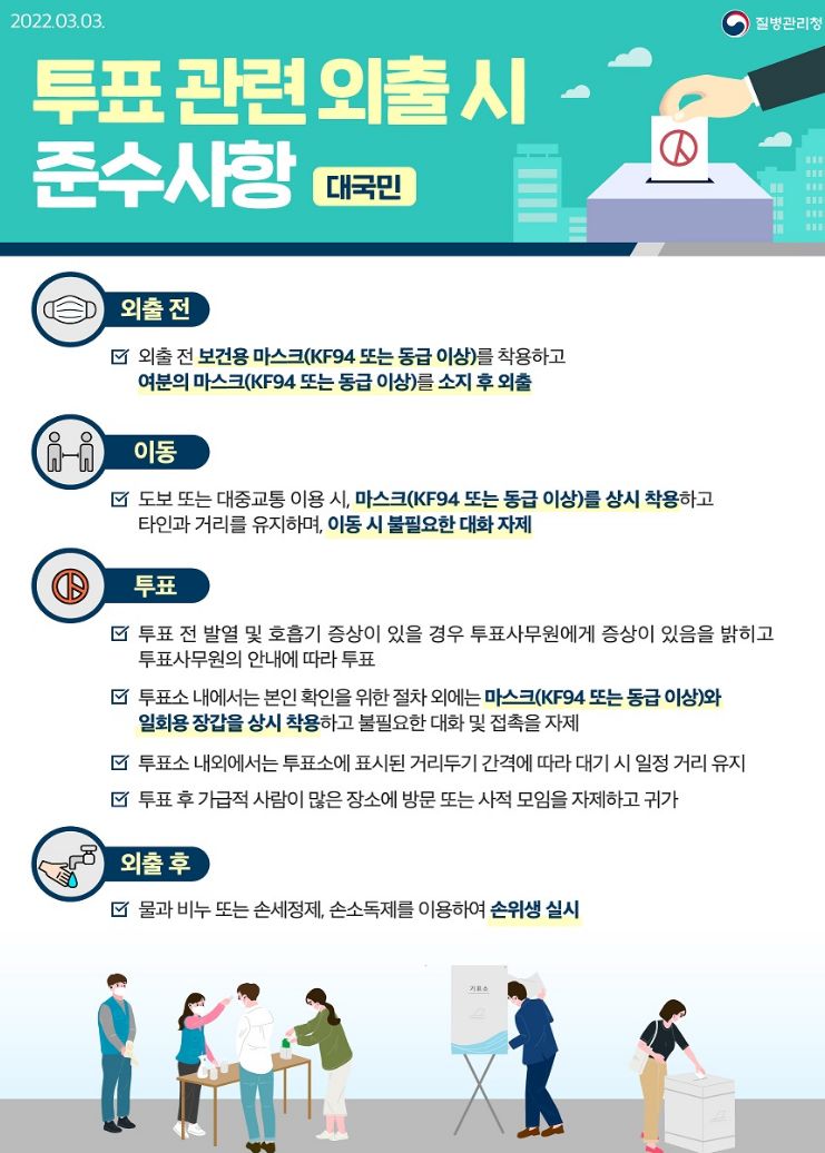 2022년 3월 3일자, 선거/투표관련 외출시 주의사항(확진자/격리자, 일반국민): 질병관리청 본문