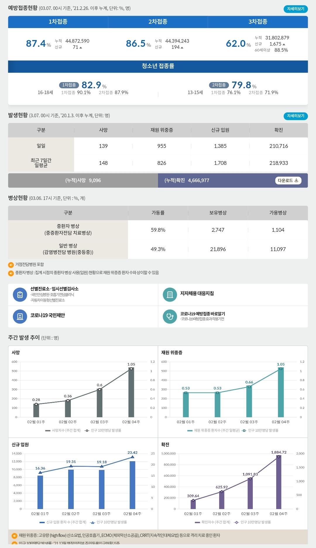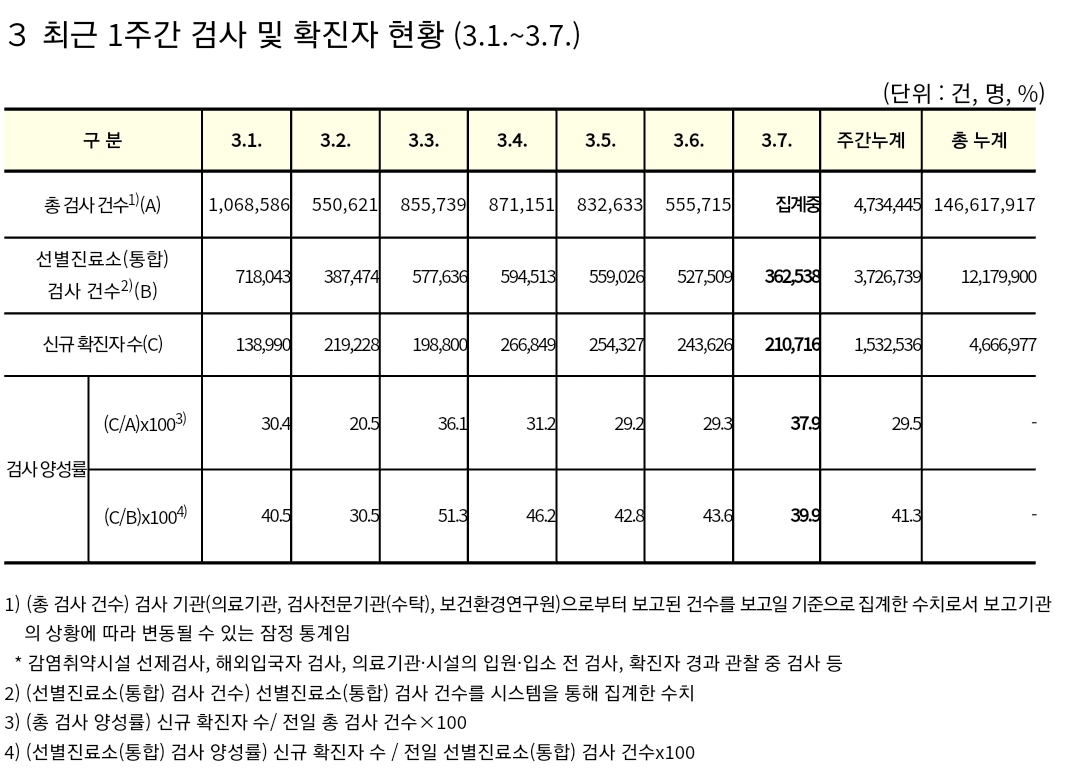| 코로나19(2022.3.6), 주간 주요 방역지표 동향 분석(2.27.~3.5.) ★ (0) | 2022.03.06 |